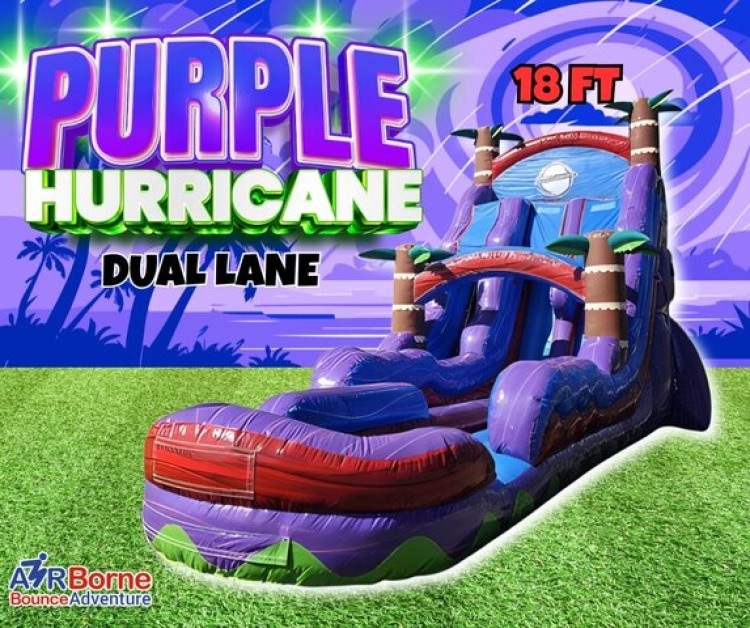 Reserve the 18 Foot Dual Lane Purple Hurricane Waterslide today and turn your event into an unforgettable summer adventure!